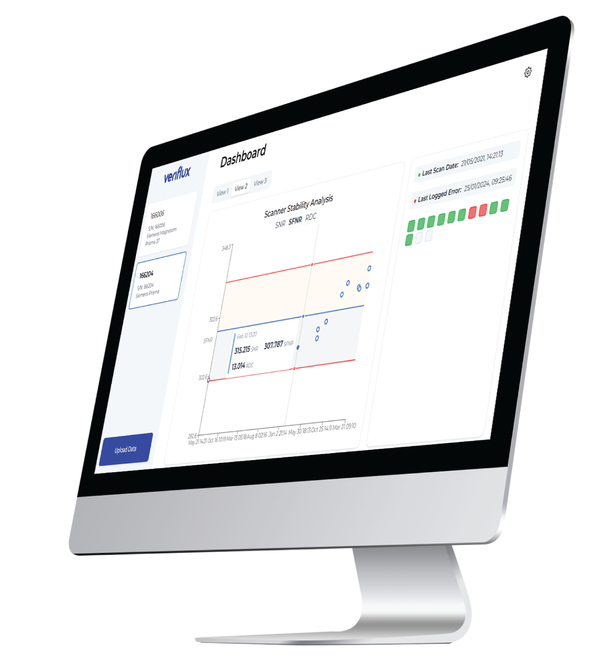 - Automated QA Testing: Receive instant Green light - Red light feedback and comprehensive scanning history graphs upon DICOM image upload.